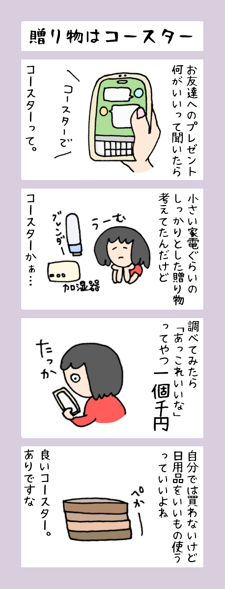 京都4コマ漫画、本日は「贈り物にコースターを選んだ」話