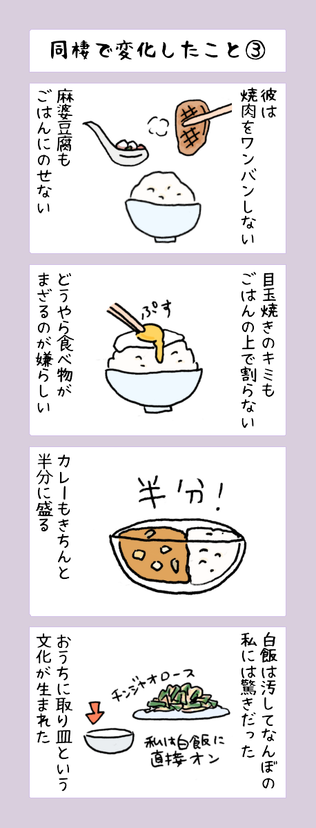 【4コマ漫画】同棲で変化したこと③ 京都4コマ漫画 Twitter Facebook はてブ LINE Pinterest コピー 2026.02.19 スポンサーリンク こんにちは!おきピン!(@okipin_)です。 京都4コマ漫画、本日は「同棲で変化したこと」の話 私はカレールーをごはんにかける派なので、うっかりカレーかけないように気をつける