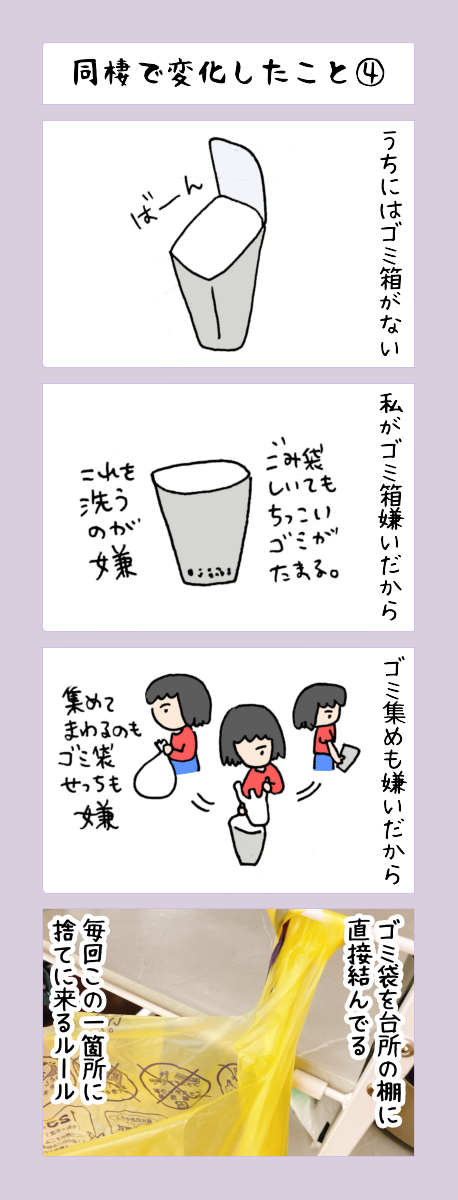 【4コマ漫画】同棲で変化したこと④ 京都4コマ漫画 Twitter Facebook はてブ LINE Pinterest コピー 2026.02.20 スポンサーリンク こんにちは!おきピン!(@okipin_)です。 京都4コマ漫画、本日は「同棲で変化したこと」の話 京都の燃えるゴミは黄色いゴミ袋 ゴミ箱置かないルールは私由来のルールなので、彼に変化してもらう形になりました。