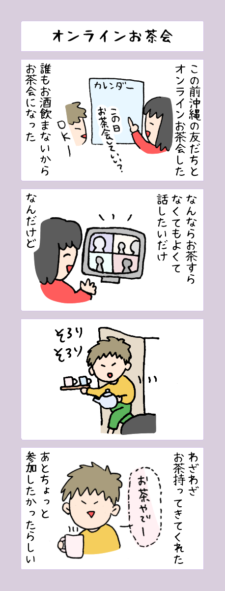 京都4コマ漫画、本日は「オンラインお茶会」の話