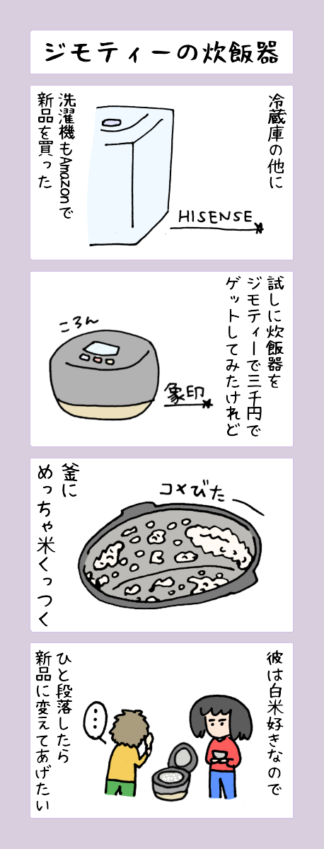 【4コマ漫画】ジモティーの炊飯器 京都4コマ漫画 Twitter Facebook はてブ LINE Pinterest コピー 2026.01.142025.11.25 こちらは広告です こんにちは!おきピン!(@okipin_)です。 京都4コマ漫画、本日は「ジモティーの炊飯器」の話