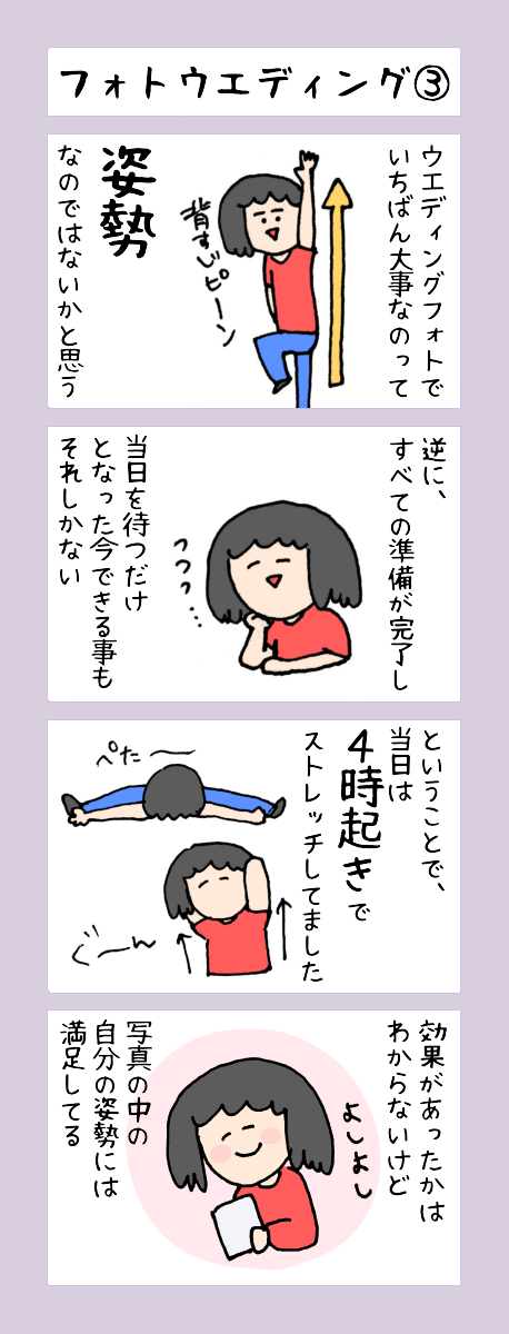 京都4コマ漫画、本日は「フォトウエディングのために姿勢を整えようとした」話