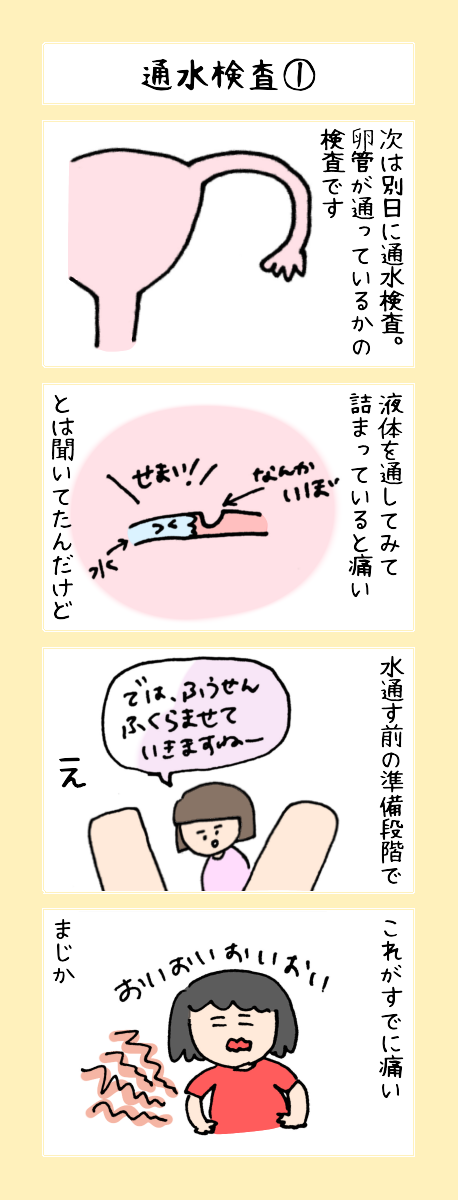 妊活4コマ漫画京都4コマ漫画番外編「妊活」編。本日は「通水検査①」の話