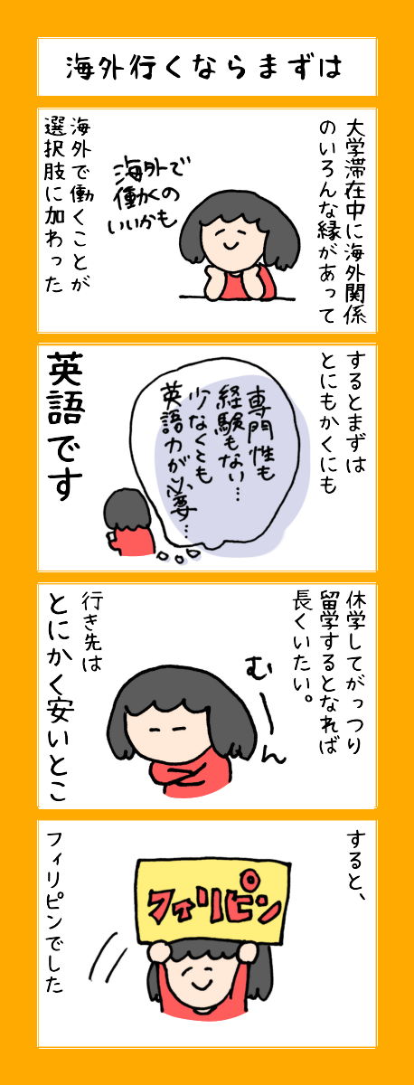 フィリピン4コマ漫画、本日は「海外行くならまずは」の話。