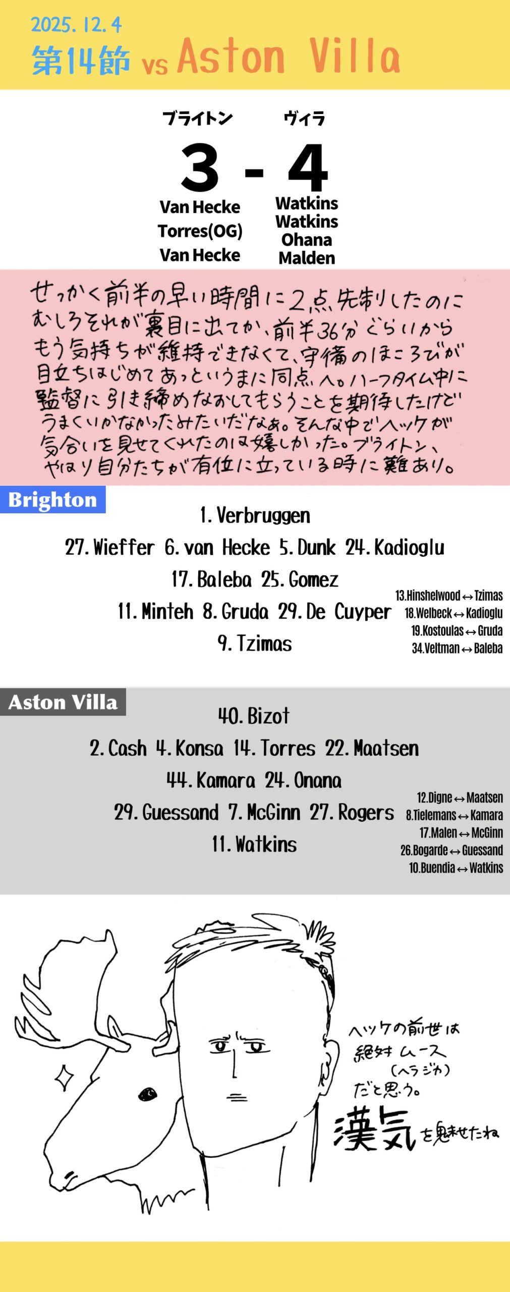 - ハーフタイム中にヒュルツェラー監督にはぜひ引き締め直して欲しい。