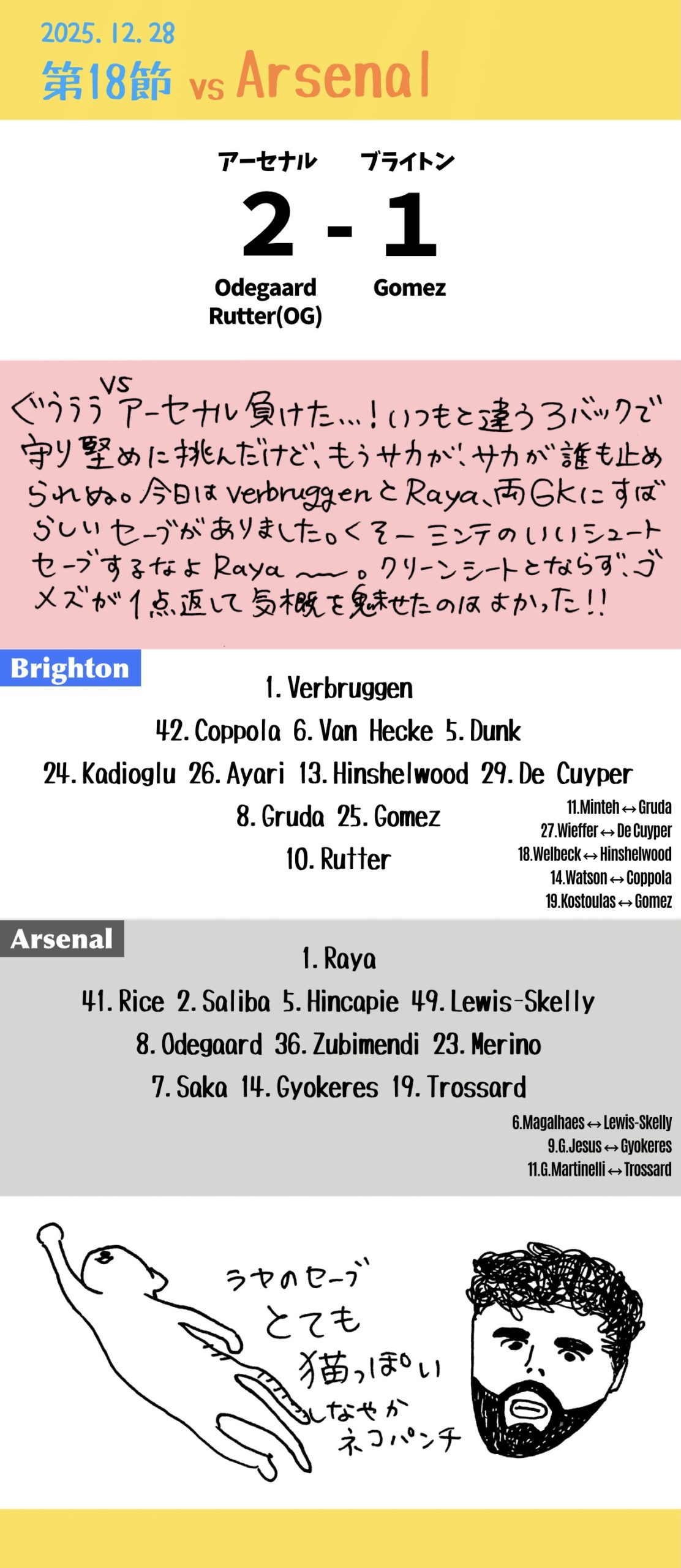 コッポラ先発起用。3バックで対アーセナル守備強化型ポジションだそうです